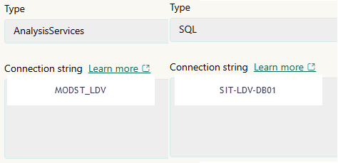 Hvis en rapport indeholder både SQL og Analysis Services som datakilder, så må der ikke gøres brug af samme servernavn til de to forbindelsestyper.