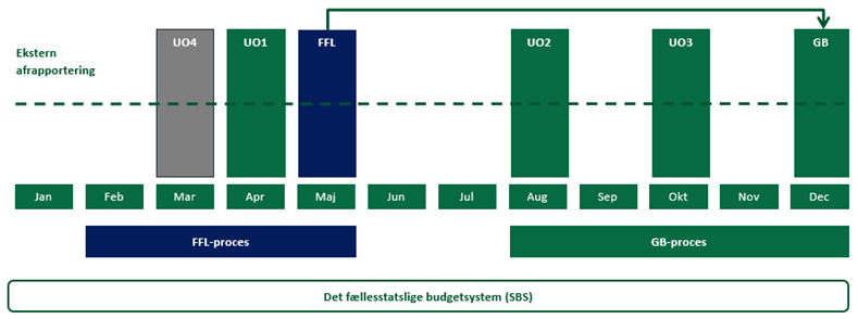 Grundbudgettet og de fire årlige udgiftsopfølgninger understøtter den statslige økonomi- og udgiftsstyring og sikrer den nødvendige opfølgning på det samlede statslige forbrug.